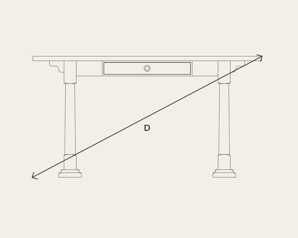 To ensure that the furniture will fit through the entryway, remember the diagonal height (D) must be less than all entryway dimensions.