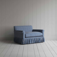 Curtain Call Love Seat in Ticking Cotton, Blue Brown
