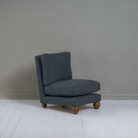 Perch Slipper Armchair in Laidback Linen Midnight, Side View - NiX