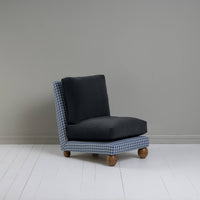 Perch Slipper Armchair in Well Plaid Frame, with Intelligent velvet Onyx cushions Side View - NiX