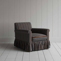 Curtain Call Armchair in Ticking Cotton, Blue Brown