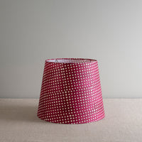 Our lampshades are made using premium fabrics that create a warm, diffused glow. This version in a playful maroon polka dot design brings plenty of personality to a room. The batik-style print gives the shade a traditional, handcrafted feel that adds to its character.
