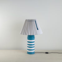 Humbug is a big, bold table lamp that embodies Nicola's passion for pattern and colour. She wanted to create something with a real presence that will stand out in any room. The lamp's striped ceramic base is available in different colour combinations that lend it a distinct character.