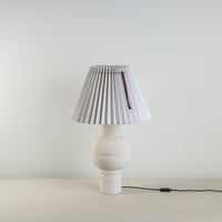 Available in a punchy turquoise, bold red, or neutral white glaze, this handsomely sized lamp base pairs beautifully with our Sunburst Concertina Natural Pleat lampshade as well as our tall Whimsical lampshade, each one lending it a different feel and scale.