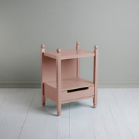 Slumber is a generously sized, two-tiered table with a deep and discreet drawer for those items you want to tuck away. Featuring four turned legs with rounded feet and finials, this piece makes a wonderful bedside table but can also be used as a side table in a living room, dining room or even a bathroom.
