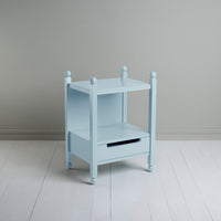 Slumber is a generously sized, two-tiered table with a deep and discreet drawer for those items you want to tuck away. Featuring four turned legs with rounded feet and finials, this piece makes a wonderful bedside table but can also be used as a side table in a living room, dining room or even a bathroom.